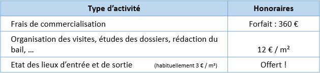 Honoraires en vigueur au sein de notre agence au 1er janvier 2024 :